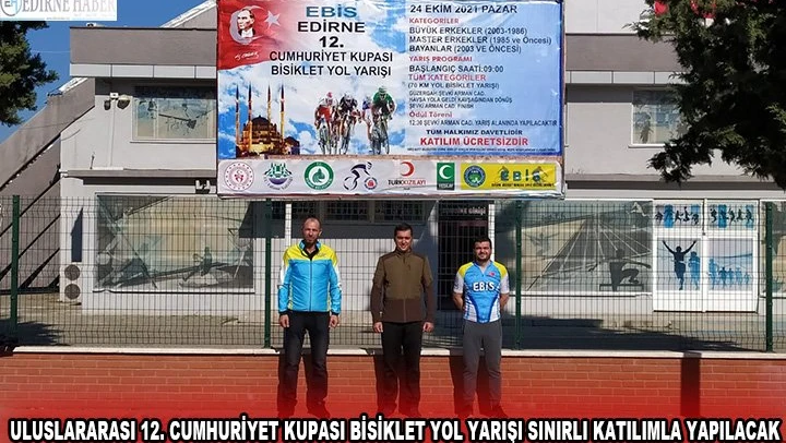- Edirne'de, 29 Ekim Cumhuriyet Bayramı kutlamaları çerçevesinde yarın "Uluslararası 12. Cumhuriyet Kupası Bisiklet Yol Yarışı" düzenlenecek.