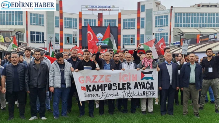 Edirne'de Trakya Üniversitesi öğrencileri, Gazze'de yaşanan insanlık dramına dikkat çekmek amacıyla 'Gazze İçin Umut, İnsanlık İçin Onur Yürüyüşü' düzenledi. Üniversitenin Bolca Ana Yemekhane önünden başlayan yürüyüşe öğrencilerin yanı sıra akademisyenler, idari personel ve üniversite yönetiminden isimler de katıldı.