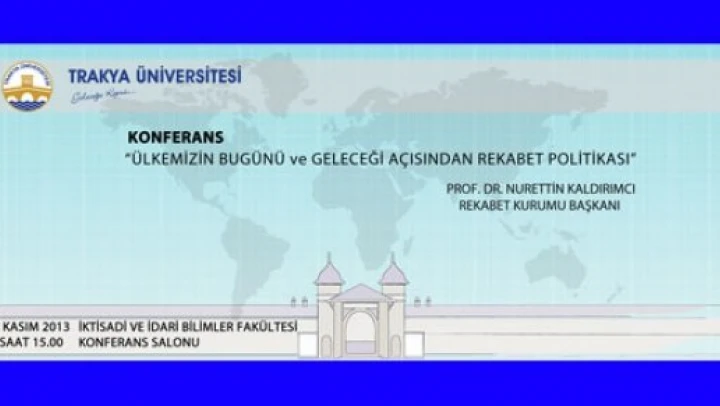 Rekabet Kurumu Başkanı Prof. Dr. Nurettin Kaldırımcı, Trakya Üniversitesi'nde, "Ülkemizin Bugünü ve Geleceği Açısından Rekabet Politikası" konulu konferans verecek."