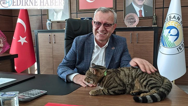 Keşan Belediye Başkanı Mustafa Helvacıoğlu, yazlıkçıların emanet ettiği sokak kedisine makam odasında bakmaya başladı.