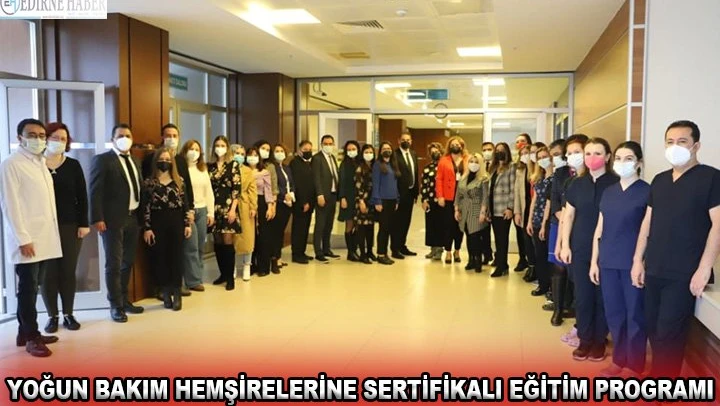Sağlık Bakanlığı tarafından ‘Yoğun Bakım Hemşireliği Uygulama Merkezi' olarak yetkilendirilen Edirne Sultan 1. Murat Devlet Hastanesi'nde 27 Eylül - 8 Kasım 2021 tarihleri arasında 6 hafta süren yoğun bakım hemşireliği sertifikalı eğitim programını tamamladı.