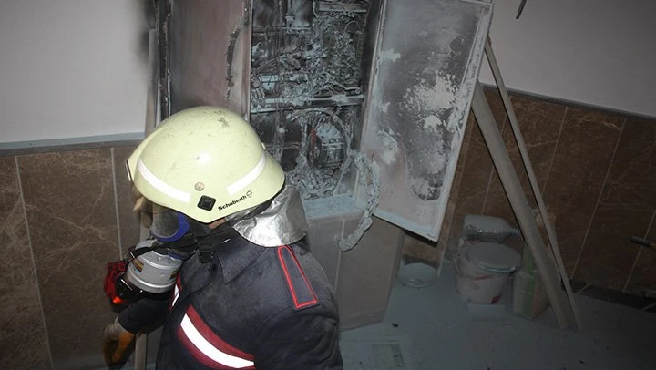 Yangının elektrik panosundan çıktığı öğrenilirken, binada hasar oluştu.