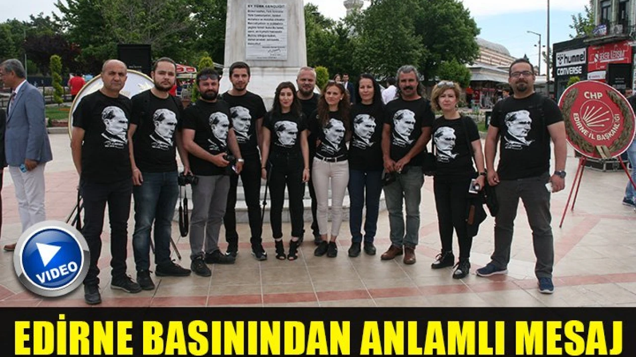 19 Mayıs Atatürk'ü Anma, Gençlik ve Spor Bayramı’nda Edirne’de çalışan basın mensupları, tek tip Atatürk logolu tişörtle görev yaptı. Atatürk’ü tek tip tişört giyerek anan gazeteciler, farkındalık yaratmak için gün boyunca Atatürk logolu tişörtlerle çalışacaklarını söylediler. Yerel bir televizyonda görev yapan gazeteci Seyide Esen, yaptığı açıklamada; “Son günlerde Atatürk’ü hedef alan bazı sözler içimizi acıtıyor. Biz de Edirne’de sahada görev yapan yerel basın mensupları olarak bugün bir farkındalık yaratalım dedik. Hepimiz aynı tişörtleri giydik. Atatürk’ü çok seviyoruz. Atatürk her zaman kalbimizde. Tüm arkadaşlarıma teşekkür ediyorum” diye konuştu. Yerel bir gazetede muhabir olarak görev yapan Olgay Güler ise; “Günümüzde Atatürk’ün özellikle isminin değerinin boşaltılmaya çalışıldığı günlerde basın mensupları olarak bir nebze değer katmak için böyle bir uygulama yaptık. Biraz da olsa sağduyu yarattıysak ne mutlu bize. Umarız gerekli mesaj verilmiştir diyoruz. Basın her zaman Atatürk’e saygılı olacaktır” ifadelerini kullandı.