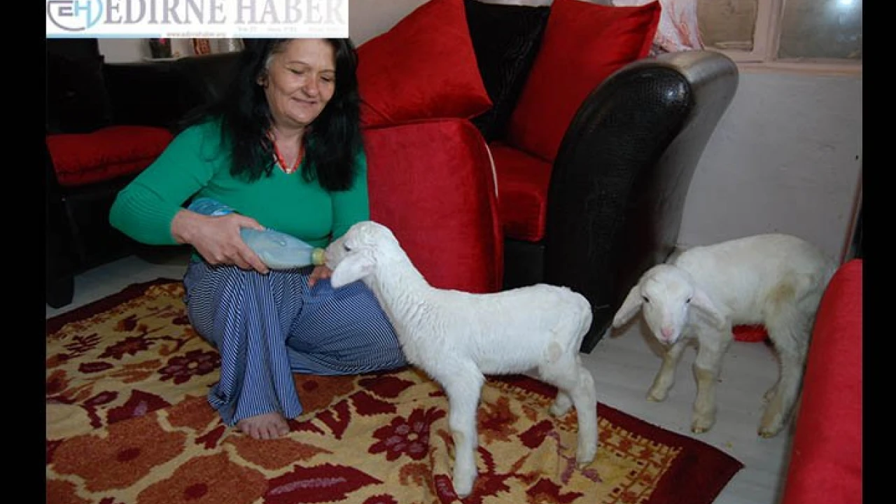 Üçüz doğuran koyunun kuzularından biri de kısa süre sonra ölünce beş çocuk annesi Hatice Eroğlu, diğer iki kuzuyu yaşatmak için eve aldı. Yaklaşık bir haftadır evde biberonla beslenen kuzular, aile fertlerinin ve komşuların da maskotu oldu.