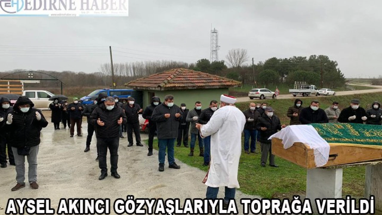 Aysel Akıncı, Kovid-19 salgın tedbirleri kapsamında sınırlı sayıda katılımcı ve sosyal mesafe kurallarına göre düzenlenen törenin ardından Doyran köy mezarlığına defnedildi. Hastalığına yenik düşen Aysel Akıncı, kılınan cenaze namazının ardından gözyaşlarıyla toprağa verildi.AK Parti Edirne İl Yönetim Kurulu Başkan Yardımcısı Aydoğan Akıncı'yı bu acılı gününde eş dost, yakınları ve partililer yalnız bırakmadı.