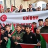 Edirne Eski Cami'de cuma namazı çıkışı, İsrail'in Küresel Sumud Filosu'na saldırılarına yönelik protesto düzenlendi.