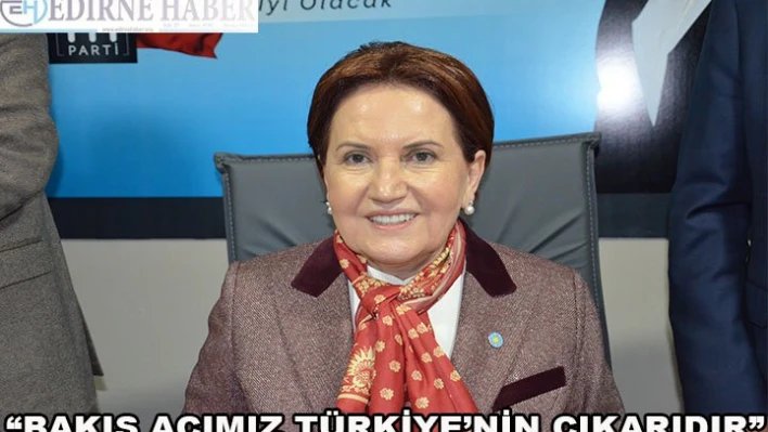 İYİ Parti Genel Başkanı Meral Akşener Trakya gezileri kapsamında Edirne'yi ziyaret etti. Esnaf ve vatandaşlar dinleyen Akşener, daha sonra İYİ Parti Edirne İl Başkanlığı'nda açıklamalarda bulundu. İdlib konusuyla ilgili açıklamalarda bulunan Genel Başkan Meral Akşener bakış açılarının Türkiye'nin çıkarı yönünde olduğunu belirtti. Akşener 'Bizim bakış açımız Türkiye'nin çıkarıdır. Bizim temel bir ilkemiz var, Türkiye'nin çıkarı neyi öngörüyorsa onun yanında dururuz.' Dedi.