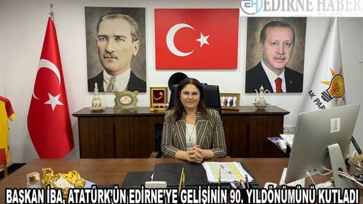 AK Parti Edirne İl Başkanı Belgin İba, Gazi Mustafa Kemal Atatürk'ün, Edirne'ye gelişinin 90. yıl dönümü nedeniyle mesaj yayımladı.