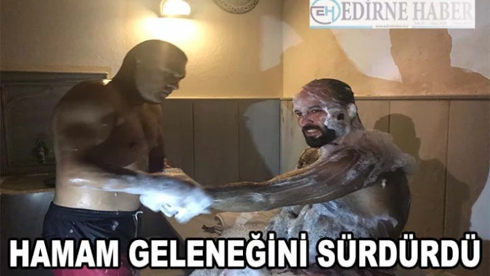 657. Tarihi Kırkpınar Yağlı Güreşleri Başpehlivanı Orhan Okulu, başpehlivanların hamama gitme geleneğini sürdürdü.
