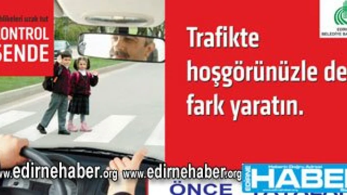 Edirneli sürücüleri yaya geçitlerinde yayalara yol vermeye davet ediyoruz. Bu sorumlu davranış, kentimize gelen yabancıların yanı sıra kendi vatandaşlarımızın özellikle de öğrencilerimizin can güvenliği için de önemli olacaktır.''