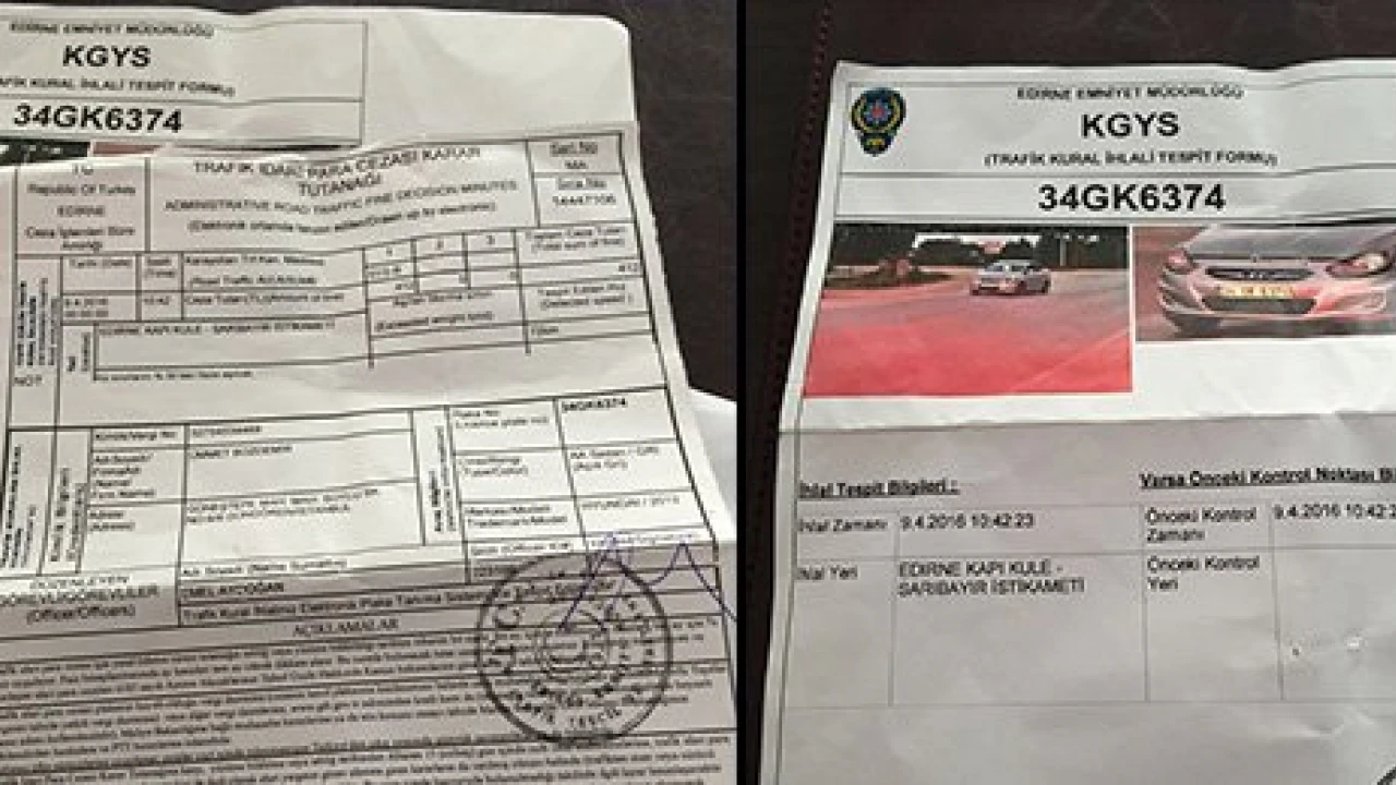 Kapıkule, Sarıbayır bölgesinde 72 Km. ile Radara giren Mevlüt Tutepe, ' Çocuklarımın rızkını cezaya vereceğim. O Bölgede 72. Km. ile geçtim diye 412 lira ceza yazılmış. Bir daha Edirne'ye gitmek mi? Tövbe' dedi.