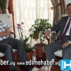 Edirne Valisi Gökhan Sözer, Edirne Belediye Başkanlığı'na gelerek Belediye Başkanı Hamdi Sedefçi'ye veda ziyaretinde bulundu.