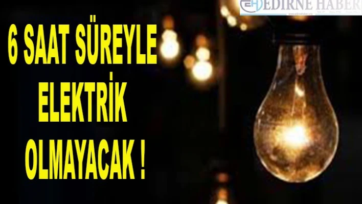 Trakya Elektrik Dağıtım AŞ (TREDAŞ) tarafından yapılacak planlı bakım onarım çalışmaları sebebiyle 6 saat süreyle elektrik kesintisi yaşanacak.