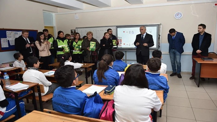 Çanakkale Belediyesi kentte bulunan okullarda öğrencilere elma dağıttı.