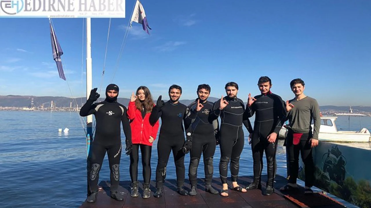 Trakya Üniversitesi Su Altı Topluluğu üyesi öğrenciler, 2019-2020 eğitim öğretim yılı ikinci yarıyıl dönemi öncesinde Marmara Denizi ve çevresinde, çevre bilincini yaymak amacıyla temizlik çalışması yürüterek önemli bir sosyal sorumluk projesine imza attı. Trakya Üniversitesi Su Altı Topluluğu’ndan dalgıçlar, Gölcük İlçesi Değirmendere Sahili’nde yaptıkları su altı temizliği kapsamında denizden kilolarca çöp çıkardı. Trakya Üniversitesi öğrencilerinin gerçekleştirdiği su altı temizliğinden çıkan atıkların çoğunluğunu cam, plastik ve benzeri atıklar oluşturdu. “Geleceğe El At” sloganıyla “Körfez Temizliği” kapsamında gerçekleşen çalışma, Trakya Üniversitesi Keşan Hakkı Yörük Sağlık Yüksekokulu öğretim elemanı ve Trakya Üniversitesi Su Altı Topluluğu Akademik Danışmanı Dr. Öğr. Üyesi Gülsün Memi’nin öncülüğünde gerçekleştirildi. Trakya Üniversitesi İktisadi ve İdari Bilimler Fakültesi öğrencisi ve Su Altı Topluluğu Başkanı Onur Çelik’in de katıldığı etkinlikte, Batuhan Nadir Bingöl, Batuhan Demirata, Berke Demirata, Aleyna Cabbar, Yusuf Ercan ve dalış eğitmeni Uğur Çelik’ten oluşan balık adamlar Değirmendere sahilinde temizlik yaptı.