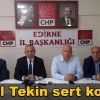 CHP İstanbul Milletvekili Gürsel Tekin, Edirne İl Başkanlığında düzenlediği basın toplantısında gündem dair konularda açıklamalarda bulundu. Toplantıya Milletvekili Erdin Bircan, Belediye Başkanı Recep Gürkan, İl Başkanı Fevzi Pekcanlı, İlçe Başkanı Fevziye Kirezci katıldı. Adli Yıl açılışına katılmayan CHP genel Başkanı Kemal Kılıçdaroğlu için, “Mahalle baskısı yüzünden katılmıyor” diyen Adalet Bakanı Bekir Bozdağ’a cevap Milletvekili Tekin, “ hiçbir CHP’li hiç kimseye boyun eğmez, Hele mahalle baskısına hiç eğmez” dedi.