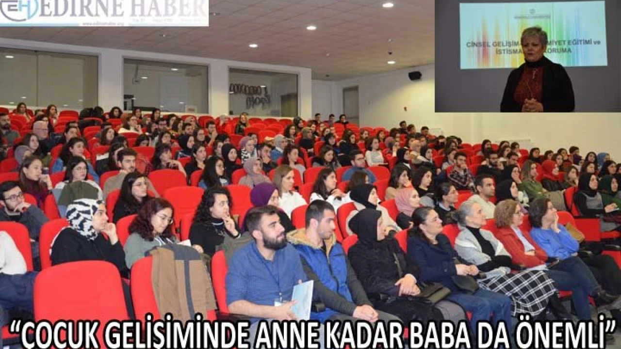 Trakya Üniversitesi Eğitim Fakültesi'nde düzenlenen konferansla geleceğin özel eğitimcileriyle bir araya gelen Anadolu Üniversitesi Özel Eğitim Bölümü Öğretim Üyesi Doç. Dr. Ayten Düzkantar anne ve babanın doğumdan itibaren çocuk üzerinde önemli bir rol oynadığını belirtti.Düzkantar 'Doğumdan sonra bebekler ebeveynleriyle vakit geçirdiklerinde, ebeveynlerinin onlara sarılması durumuyla birlikte güvenli bağlanma dediğimiz durum ortaya çıkıyor. Güvenli bağlanmayı tam yapabilmiş çocukların immün sistemi iyi geliştiği için hastalıklara daha dayanıklı oluyor.' Dedi.