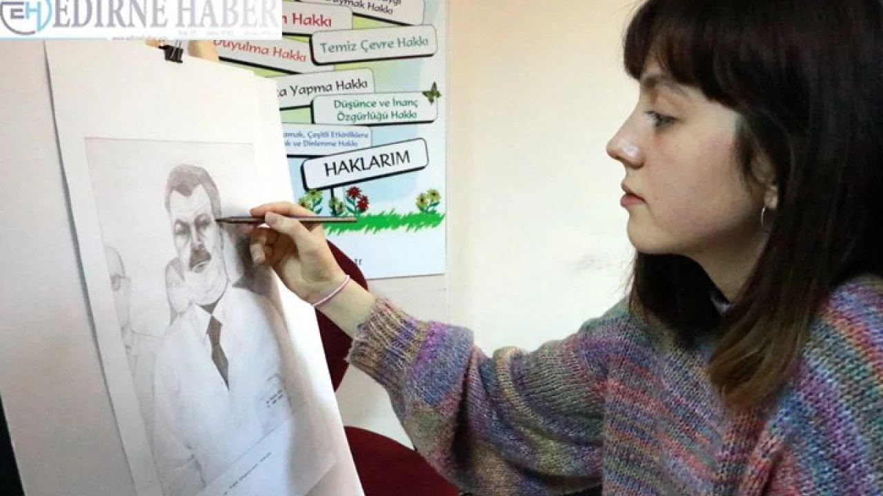 Kırklareli Aile, Çalışma ve Sosyal Hizmetler Müdürlüğü Çocuk Hakları İl Komitesi üyesi 15 yaşındaki Ayşenur Oral, yeni tip koronavirüs (Kovid-19) sürecinde cansiperane görev yapan sağlık çalışanlarına moral vermek amacıyla Sağlık Bakanı Fahrettin Koca'nın kara kalem resmini çizdi.