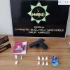 Polisi gören şüpheli E.Ö, elindeki ruhsatsız tabanca, 1 gram eroin, 5 gram bonzai ve dolu fişekleri yere atıp kaçtı.