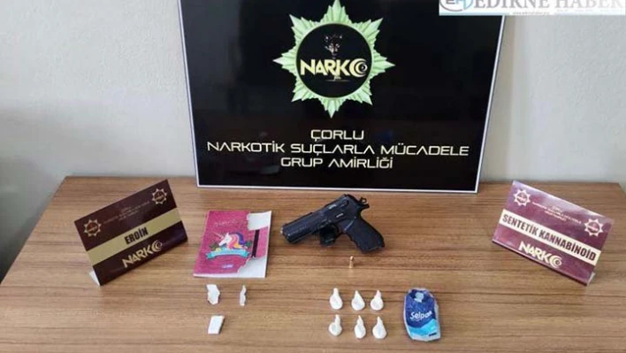 Çorlu ilçesinde polisi görünce silah ve uyuşturucuyu yere atıp kaçan şüphelinin yakalanması için çalışma başlatıldı.