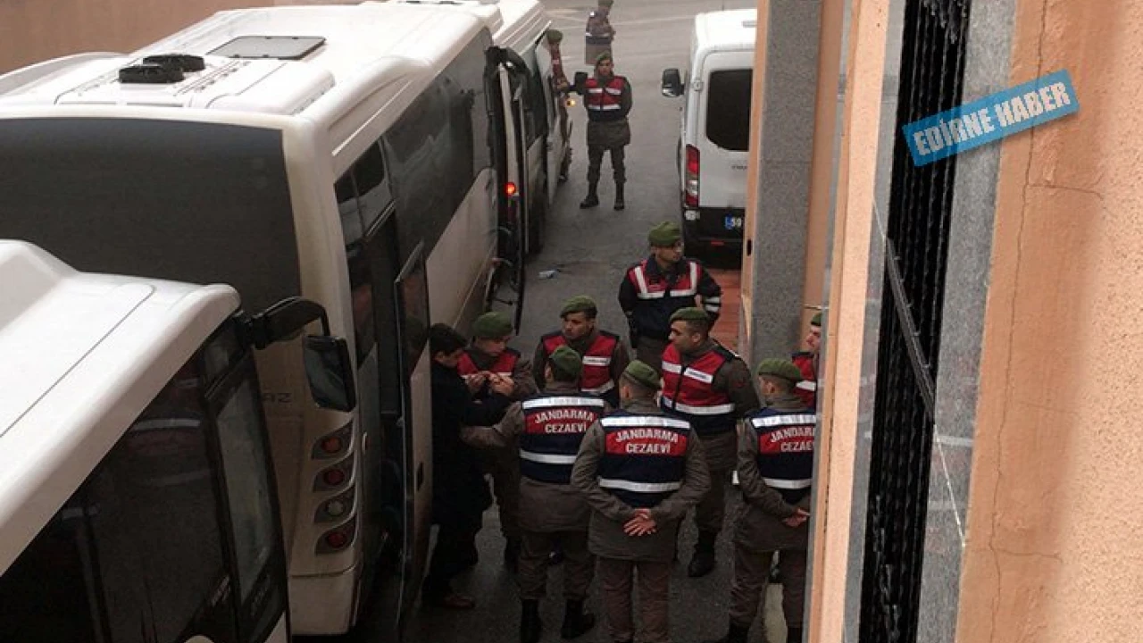 Tutuklu sanıklar dünkü duruşma için cezaevi ring araçlarıyla Edirne Adliyesine getirildi.