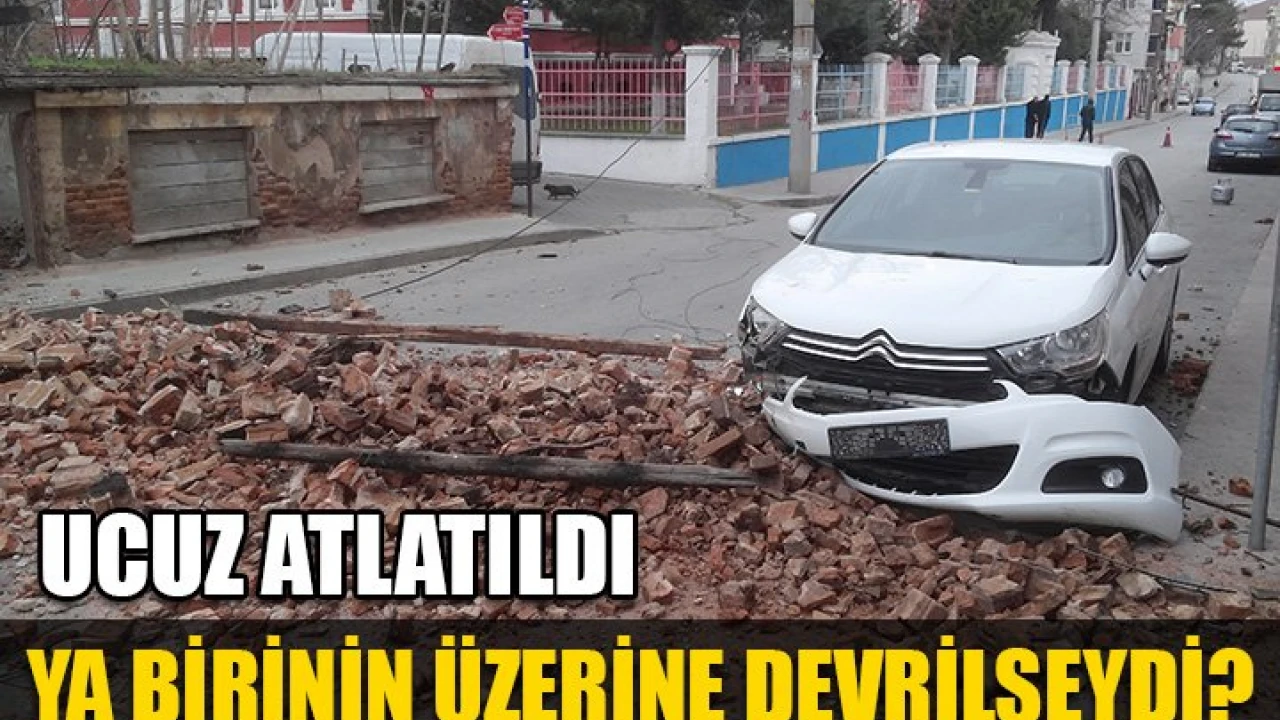 Dün sabah başlayan ve hızı saatte 50 Km.ye ulaşan şiddetli Poyraz sonucu baca, yolun karşısına park etmiş Serhat Tümer’e ait 22 NK 872 Plakalı özel aracın üzerine devrildi. Araçta ağır hasar meydan gelirken, yol uzun süre trafiğe kapandı.