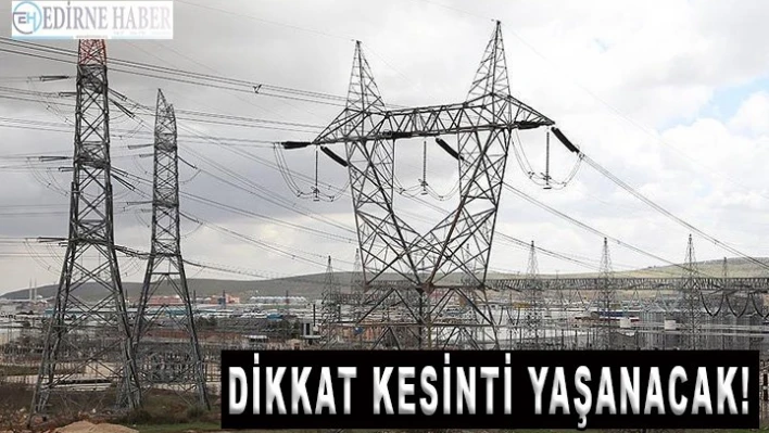 Trakya Elektrik Dağıtım Anonim Şirketi, Edirne İl Müdürlüğü programlı elektrik kesintisi yapılacağını belirtti. Yapılan açıklamaya göre, Koca Sinan Mahallesinin M.Zeki Yorulmaz Sokak, Reşat Çamdere Sokak, Tahsin Başkan Sokak ve 32'inci Sokak'a 4 Haziran Cuma günü 8 saat enerji verilemeyecek.