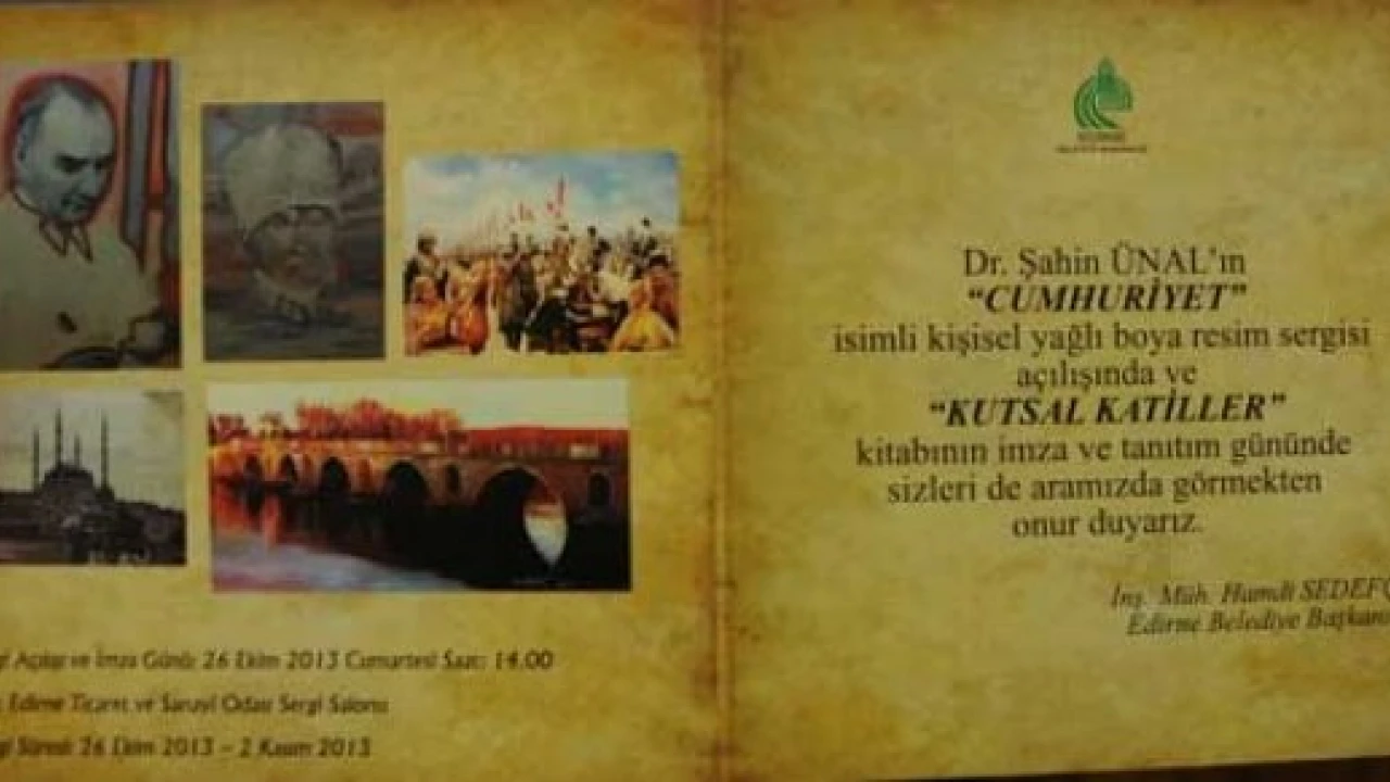 Edirne Belediyesi’nin katkılarıyla Cumhuriyet Haftası etkinlikleri kapsamında Edirne Ticaret ve Sanayi Odası Sergi Salonu’nda Dr. Şahin Ünal’ın 5. Kişisel Yağlı Boya Sergisi olan “Cumhuriyet” konulu sergi açılacak.
