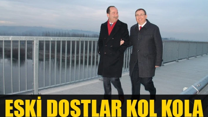 Bakan Müezzinoğlu’nun köprü ziyaretinde kolkola giren ve başarı öyküsü fotoğrafı sergileyen Başkan Gürkan ve Rektör Tabakoğlu, görevleri dışında, dostlukların eskimeyeceğini de göstermiş oldu.
