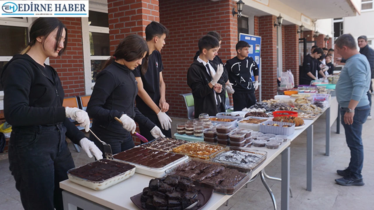 Edirne'de Dr. Sadık Ahmet Turizm Mesleki ve Teknik Anadolu Lisesi tarafından mazlum Gazze halkına destek olmak amacıyla düzenlenen yardım kermesi, yoğun katılımla gerçekleştirildi.