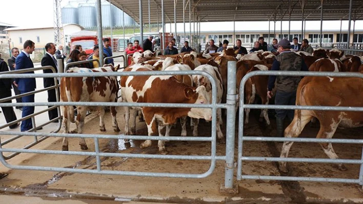 Bu çiftçilerden kent merkezinde, 10'u kadın olmak üzere toplam 11 çiftçinin düveleri dağıtıldı.