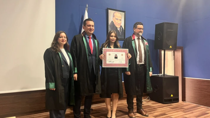 Avukat Kardelen Özgün, çocukluk hayalini gerçekleştirmenin gururunu yaşarken, tören davetlilerin tebrikleriyle sona erdi.