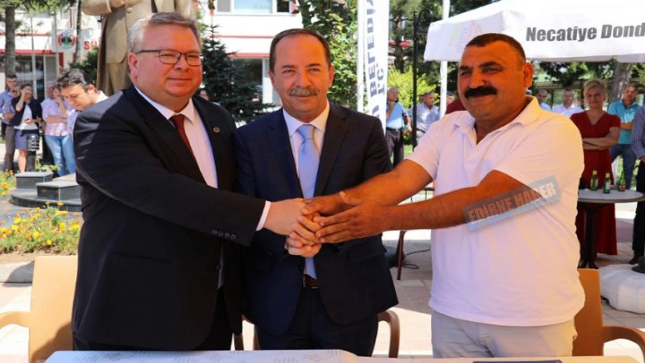 İmza töreni öncesinde konuşan Edirne Belediye Başkanı Recep Gürkan, ekmeği bölüşmek konusunda hiçbir zaman tereddüt yaşamadıklarını söyledi. Ekmeği hakça herkesin karnını doyuracak şekilde bölüşeceklerini ifade eden Gürkan, “Tek bir amacımız var; insana hizmet etmek. Seçimlerde karşınıza gelip, bu görevlere talip olduk; sizler de ‘buyurun yapın’ dediniz. Tek bir hedefimiz var; halkımıza hizmet etmek. Halkın bize gösterdiği güvene, sevgiye layık olabilmek. Yetkiyi veren de alan da sizsiniz. Halkın istediklerini, halkla beraber yapan bir anlayış hakim olduk. Önce milleti yaşatacağız. Millet olmadı mı hiçbir şeyin anlamı yok.