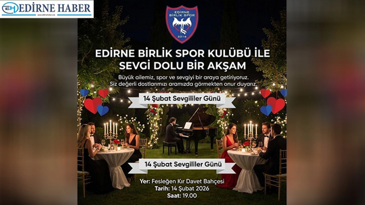 Edirne'de faaliyet gösteren Edirne Birlik Spor Kulübü, kulübün geleceğine katkı sunmak ve birlik beraberliği güçlendirmek amacıyla 'Dayanışma Gecesi' düzenliyor. 14 Şubat 2026 Cumartesi akşamı gerçekleştirilecek organizasyonda spor camiası ve Edirneliler bir araya gelecek.