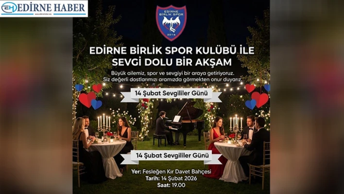 “Sevdamız Edirne, Gücümüz Edirne Birlik” sloganıyla düzenlenecek gece, 14 Şubat 2026 Cumartesi günü Fesleğen Kır Davet Bahçesi’nde gerçekleştirilecek. Organizasyona iş insanları, mülki idareciler, veliler ve Edirne’ye gönül veren sporseverlerin katılması bekleniyor.
