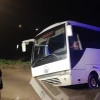 Öte yandan aynı köyde bir işçi servisi çamura saplandı.