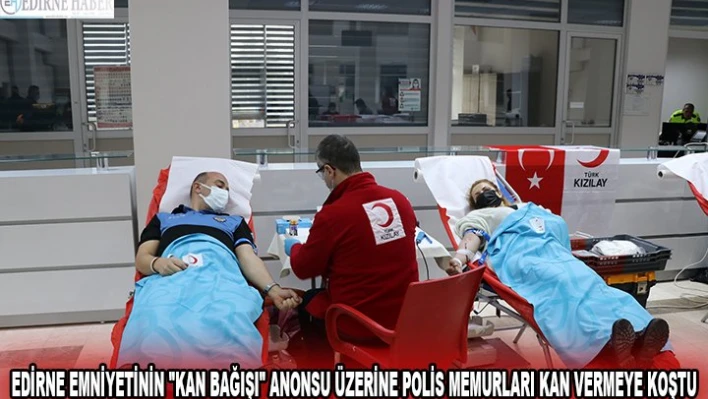 Edirne Emniyet Müdürlüğü haber merkezinin "kan bağışı" anonsunu duyan polis memurları, kan vermeye koştu