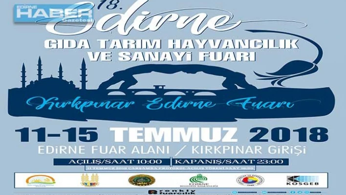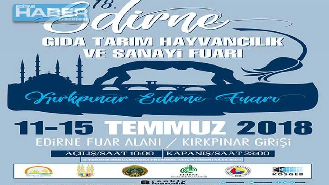 Türkiye Odalar ve Borsalar Birliği'nin (TOBB) katkılarıyla Edirne Ticaret ve Sanayi Odası'nın en büyük destekçisi olduğu Edirne Gıda, Tarım, Hayvancılık ve Sanayi Fuarı 11-15 Temmuz 2018 tarihlerinde kapılarını açmaya hazırlanıyor.