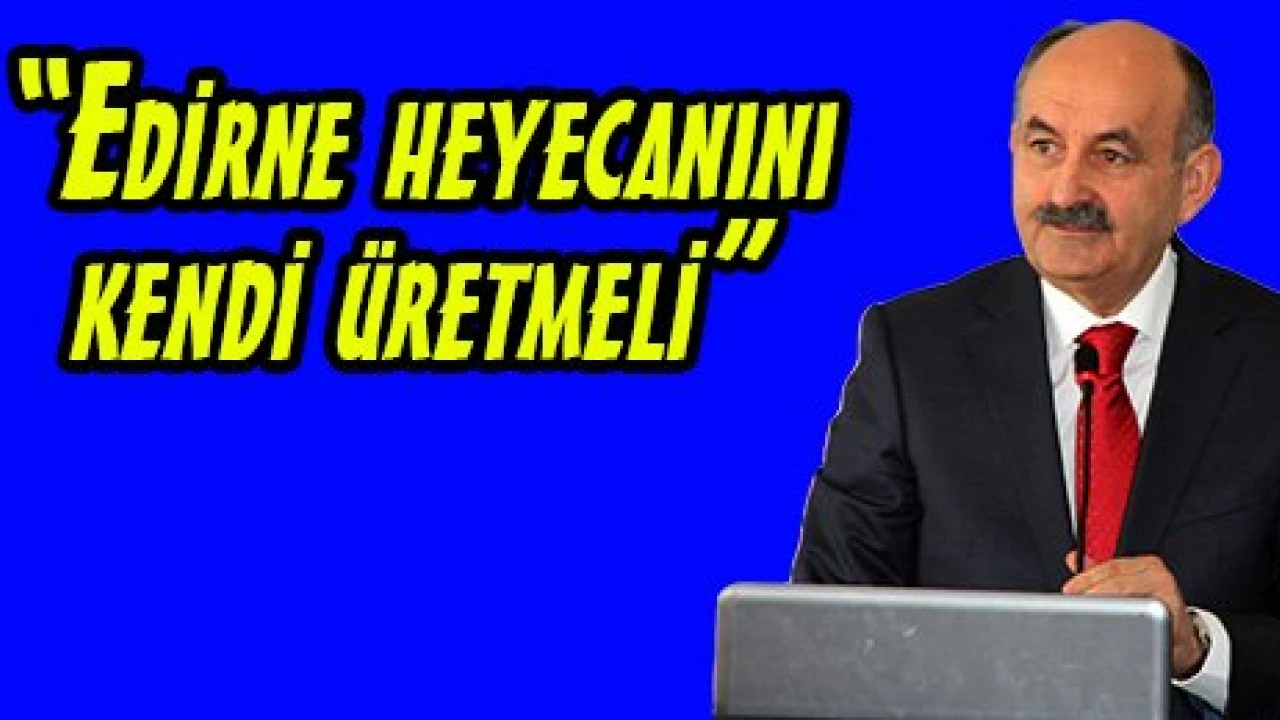 Sağlık Bakanı Mehmet Müezzinoğlu, Raporlar önemli ama önce Edirne için dertli olmak gerekli. Edirne heyecanını kendi üretmeli' dedi.