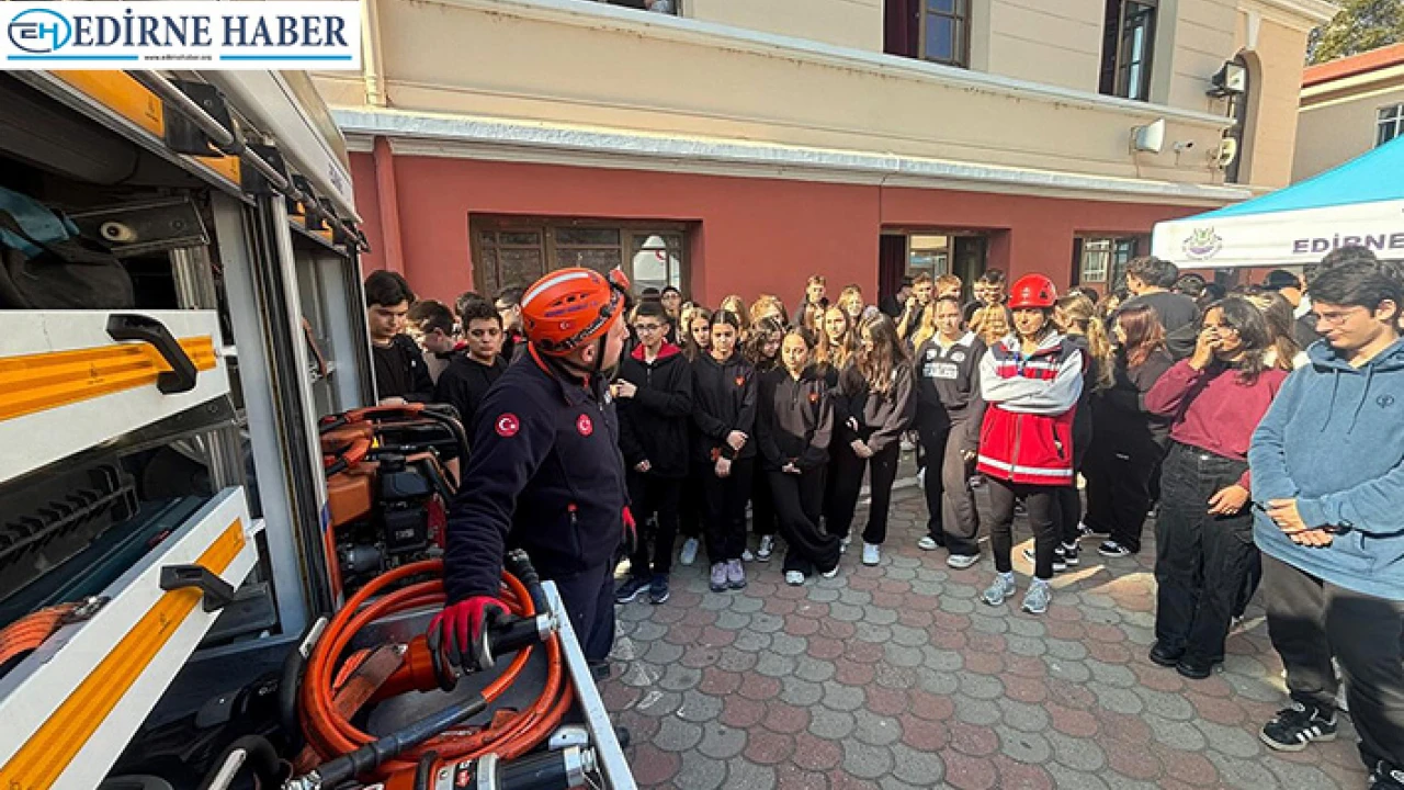 Edirne Afet ve Acil Durum Müdürlüğü (AFAD) tarafından Edirne Lisesi öğrencilerine yönelik afet farkındalık eğitimi düzenlendi. Eğitimde, öğrenciler olası afet durumlarında nasıl hareket edilmesi gerektiğini uygulamalı olarak öğrenme fırsatı buldu.