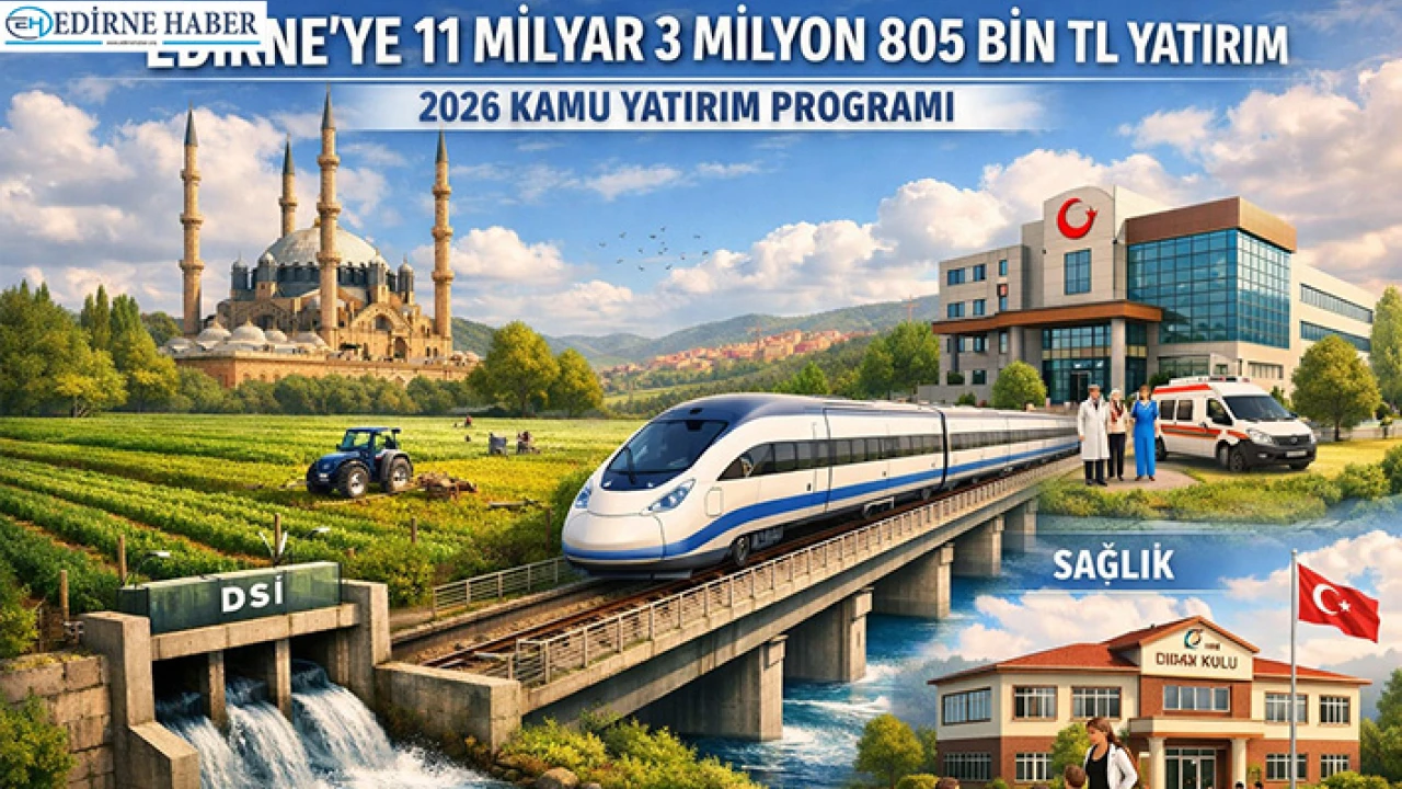 2026 Yılı Kamu Yatırım Programı kapsamında Edirne'ye toplam 11 milyar 3 milyon 805 bin TL tutarında yatırım ödeneği ayrıldı. Tarımdan ulaştırmaya, eğitimden sağlığa kadar birçok alanda hayata geçirilecek yatırımlarla Edirne'nin kalkınması, yaşam kalitesinin yükseltilmesi ve vatandaşların refah seviyesinin artırılması hedefleniyor.