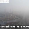 Kentin bazı bölgelerinde bir anda etkisini gösteren sis nedeniyle görüş mesafesi yer yer 50 metreye kadar düştü.