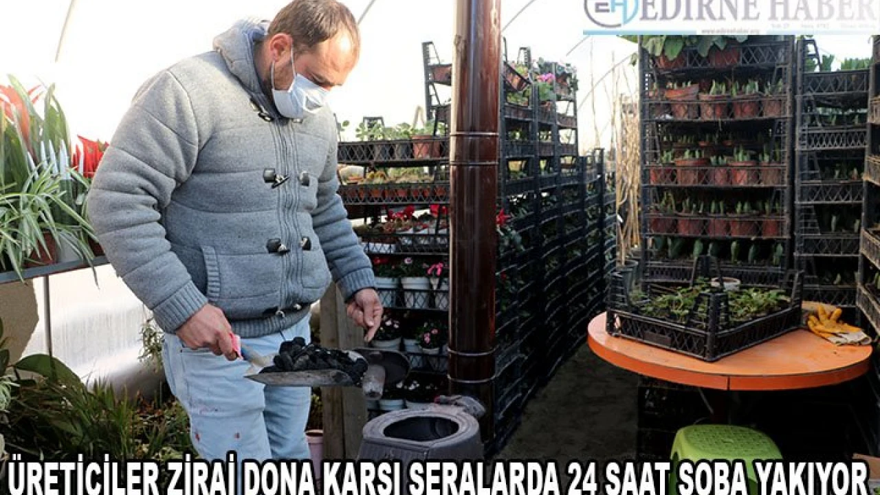 Edirne'de meyve ve çiçek fidesi yetiştiren üreticiler, zirai dona karşı seralarda 24 saat soba yakarak önlem alıyor.