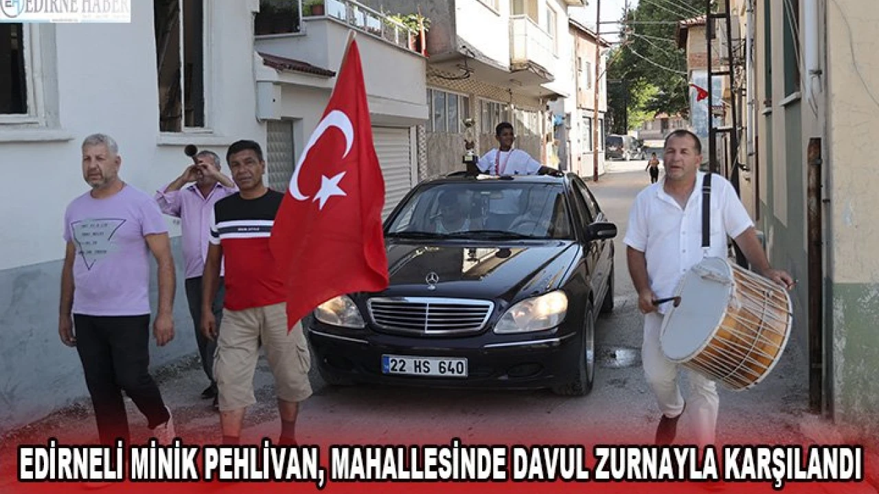 EDİRNELİ MİNİK PEHLİVAN, MAHALLESİNDE DAVUL ZURNAYLA KARŞILANDI
