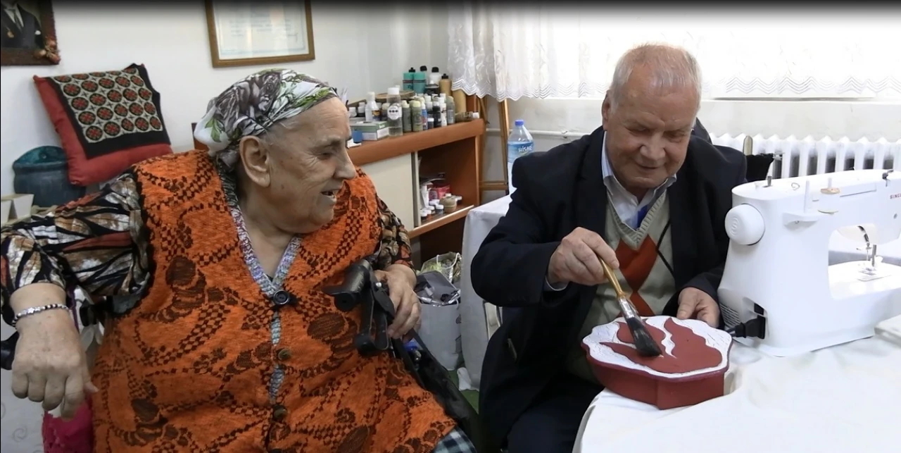 Atölyede ahşap boyamadan örgüye, resimden süs eşyalarına kadar birçok çalışma yapılıyor. Sandıklar, kutular, dikiş makineleri, eskimiş kumaş ve pantolonlar... Eskimeye ve unutulmaya yüz tutmuş atıl vaziyette ne varsa hepsi yaşlıların elinde yeniden hayat buluyor. Bin bir emekle birbirinden farklı ürünler ortaya çıkaran huzurevi sakinleri, aynı zamanda geri dönüşüme de katkı sağlıyorlar.