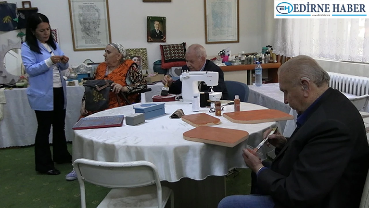 Edirne Huzurevindeki yaşlılar, boş zamanlarını el sanatları atölyesinde değerlendirerek huzur buluyor. Atölyede çeşitli sanat dallarıyla ilgili çalışmalar yapan yaşlılar, kurs eğitmenlerinden aldıkları bilgilerle el emeği göz nuru birçok ürün ortaya çıkarıyor.
