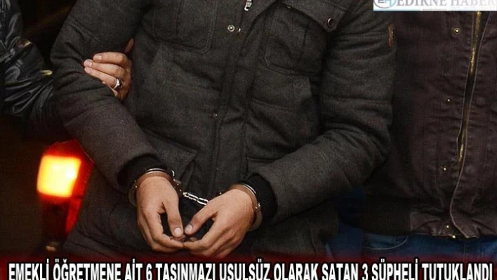 Edirne'de emekli öğretmene ait 11 taşınmazdan 6'sını usulsüz olarak satan 3 zanlı "nitelikli dolandırıcılık" suçlamasıyla tutuklandı.