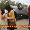 Ters dönen otomobilde, sürücü Yılkın ile yanındaki 5 aylık hamile eşi Nilgün Yılkın (25), taktıkları emniyet kemeri sayesinde kazayı yara almadı.