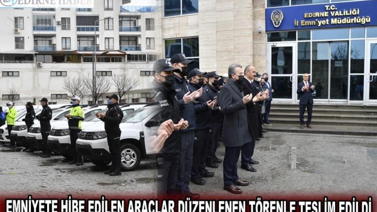 İl Emniyet Müdürlüğü'nün hizmet kapasitesinin ve kalitesinin arttırılması amacıyla Edirne Valiliği tarafından alınan araçlar düzenlenen törenle teslim edildi