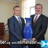Enez Kaymakamı Fatih Baysal, annesi tarafından yapılan vazoyu Vali Gökhan Sözer'e hediye etti.
